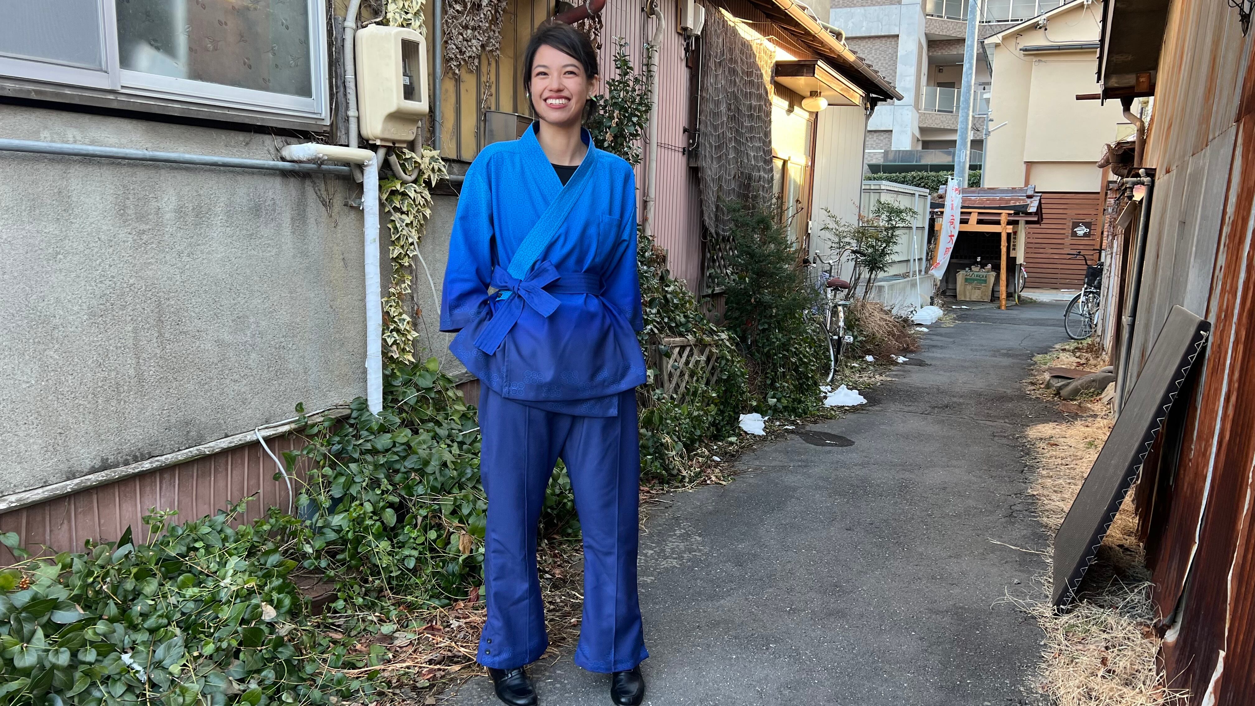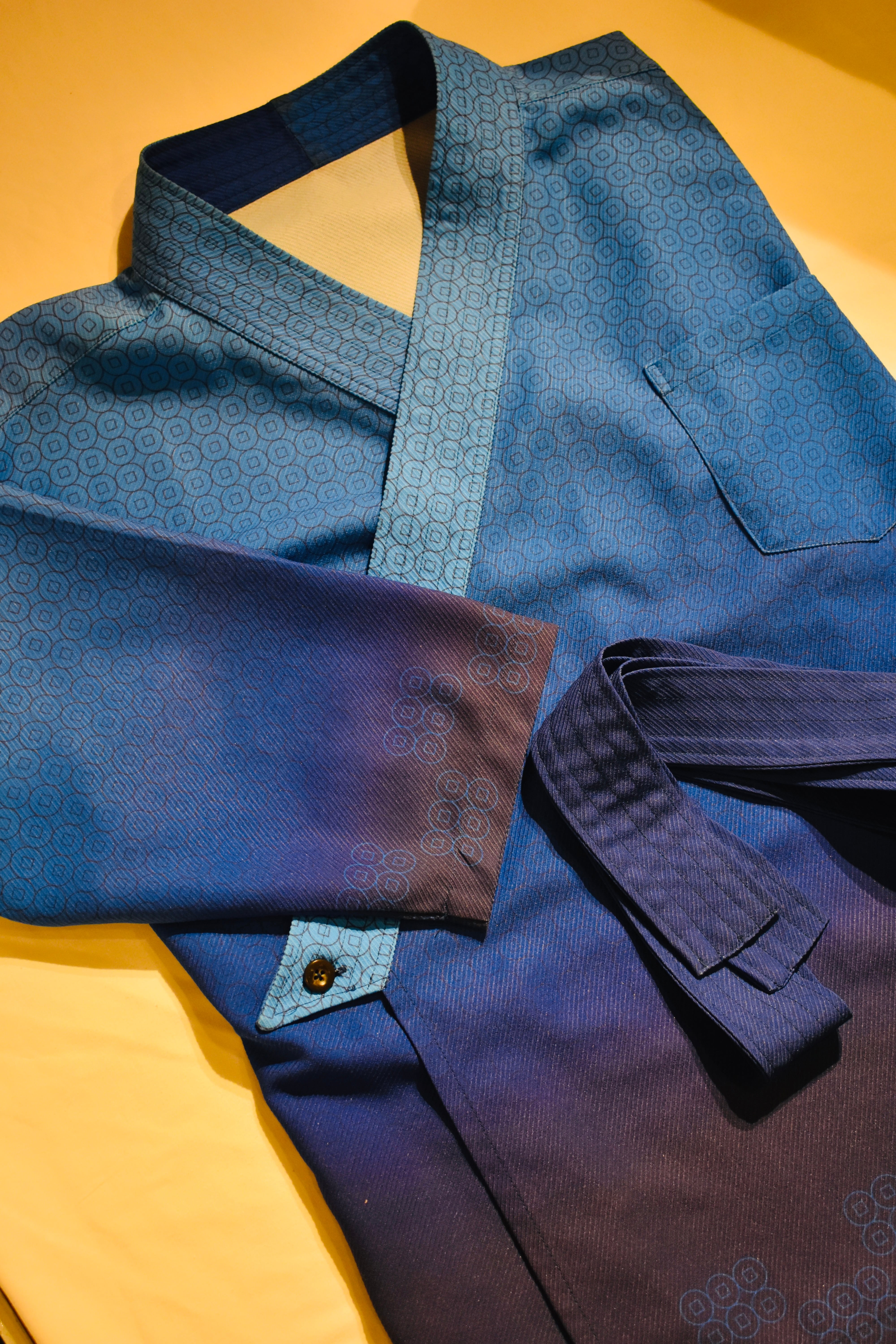 24時間着物を着る。着苦しくない簡単。そして世界初JAPAN beauty着物と日本の国技柔道、空手の道着を融合。オシャレ感とシルエットを大切に更に柄は昔からの人々の念いや考え方がある小紋柄に拘り本格着物調に。素材はまさに空手の聖地琉球のかりゆしの最高綾織ポリエステルで