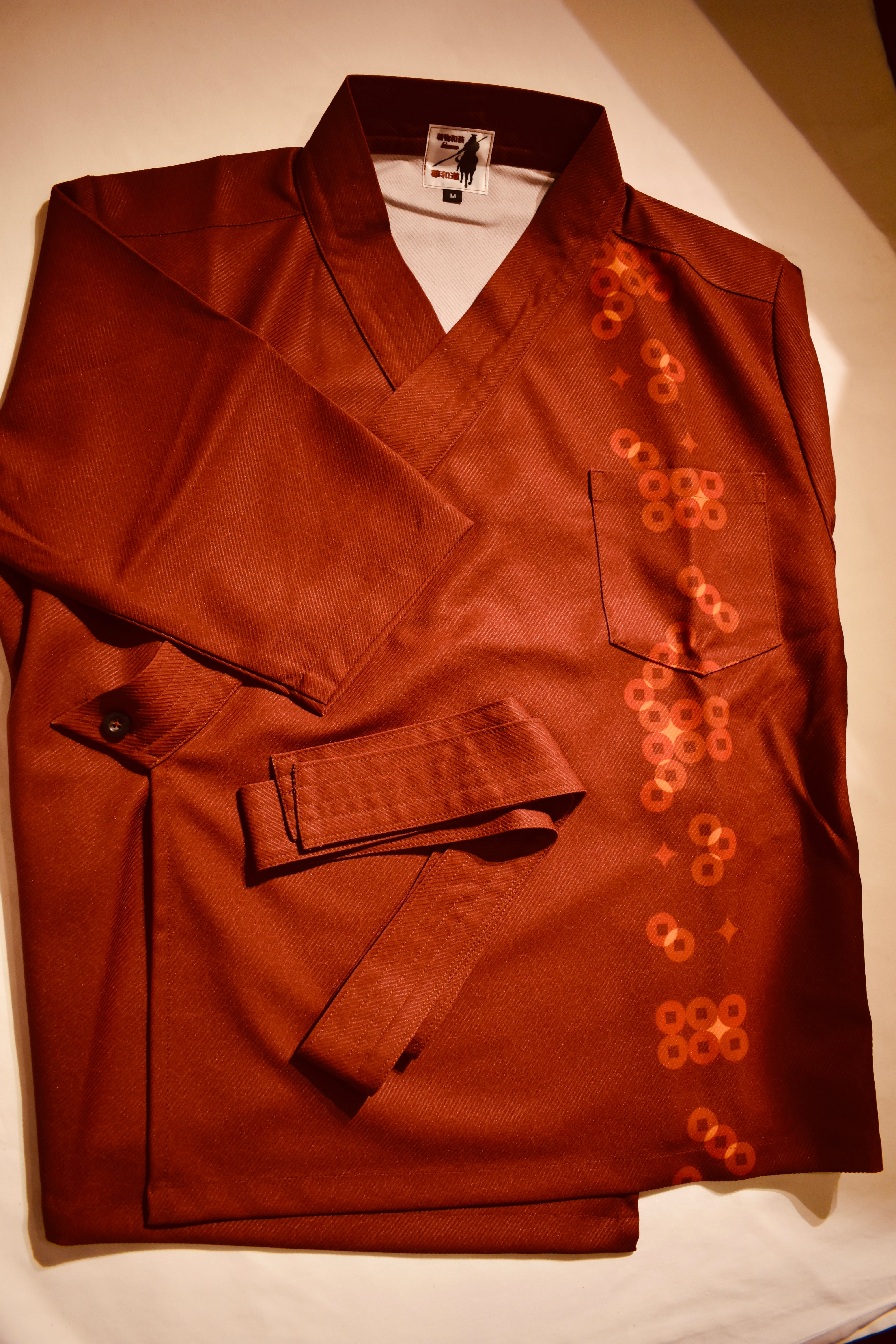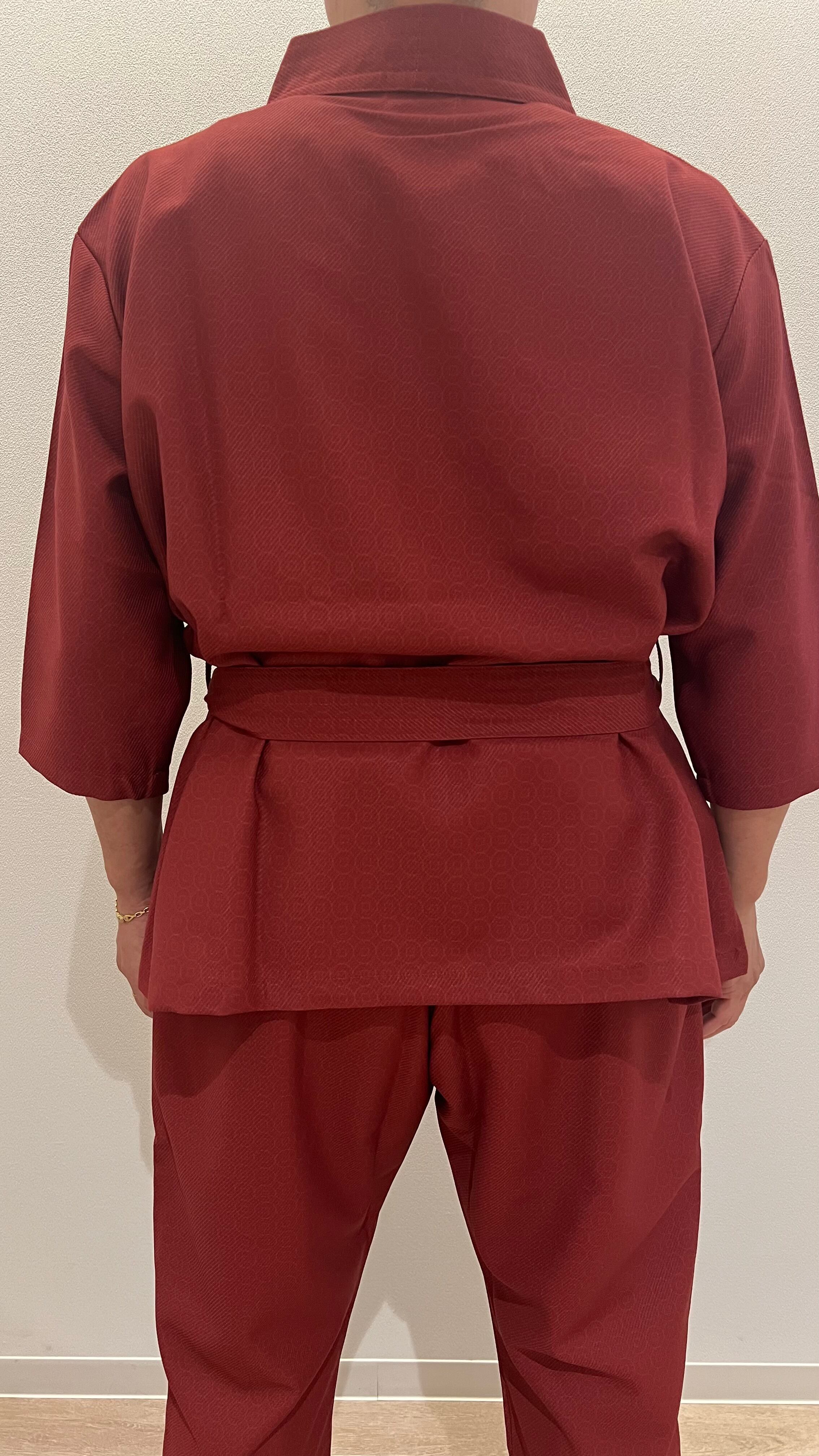 24時間着物を着る。着苦しくない簡単。そして世界初JAPAN beauty着物と日本の国技柔道、空手の道着を融合。オシャレ感とシルエットを大切に更に柄は昔からの人々の念いや考え方がある小紋柄に拘り本格着物調に。素材はまさに空手の聖地琉球のかりゆしの最高綾織ポリエステルで