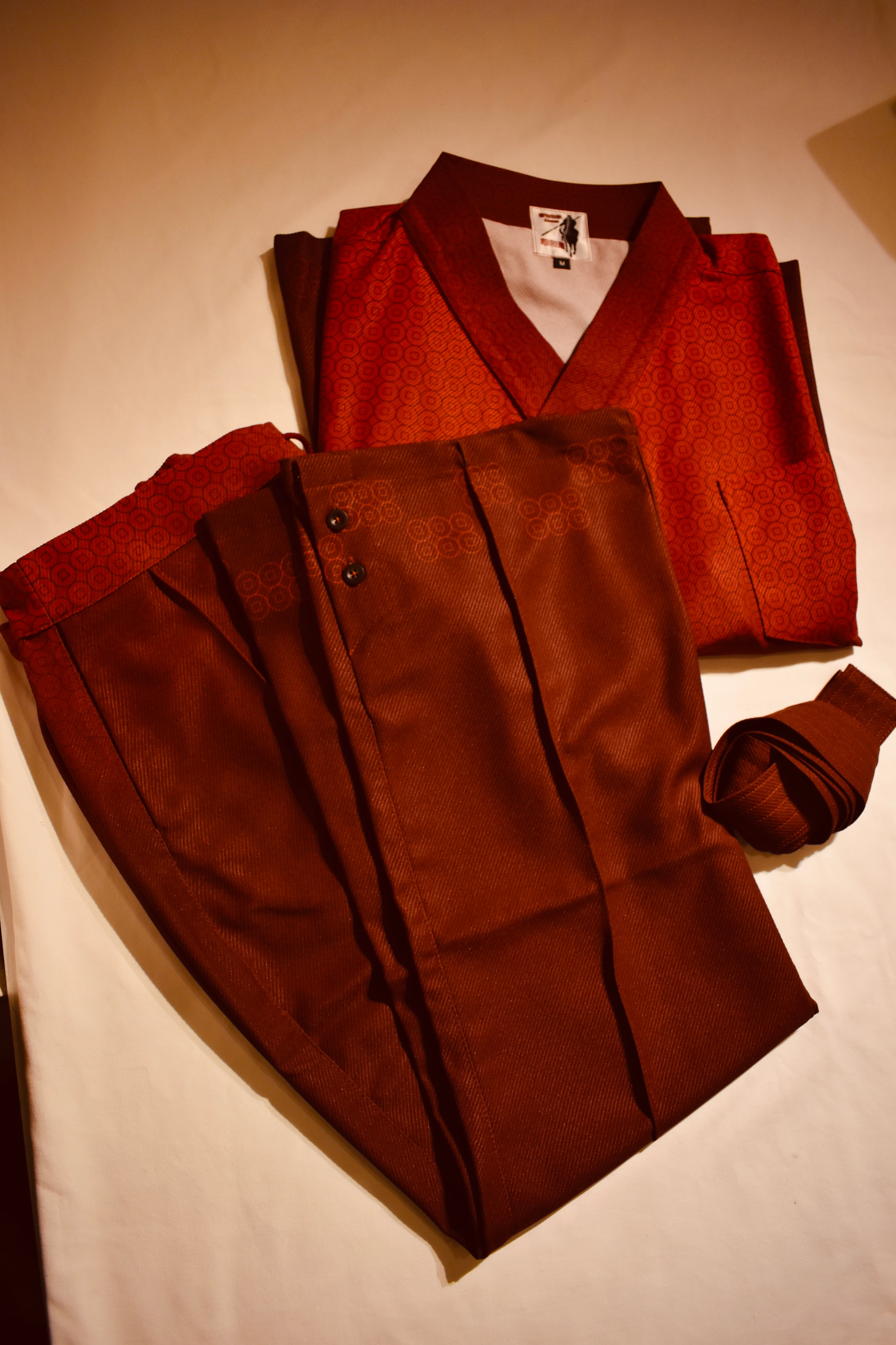 24時間着物を着る。着苦しくない簡単。そして世界初JAPAN beauty着物と日本の国技柔道、空手の道着を融合。オシャレ感とシルエットを大切に更に柄は昔からの人々の念いや考え方がある小紋柄に拘り本格着物調に。素材はまさに空手の聖地琉球のかりゆしの最高綾織ポリエステルで