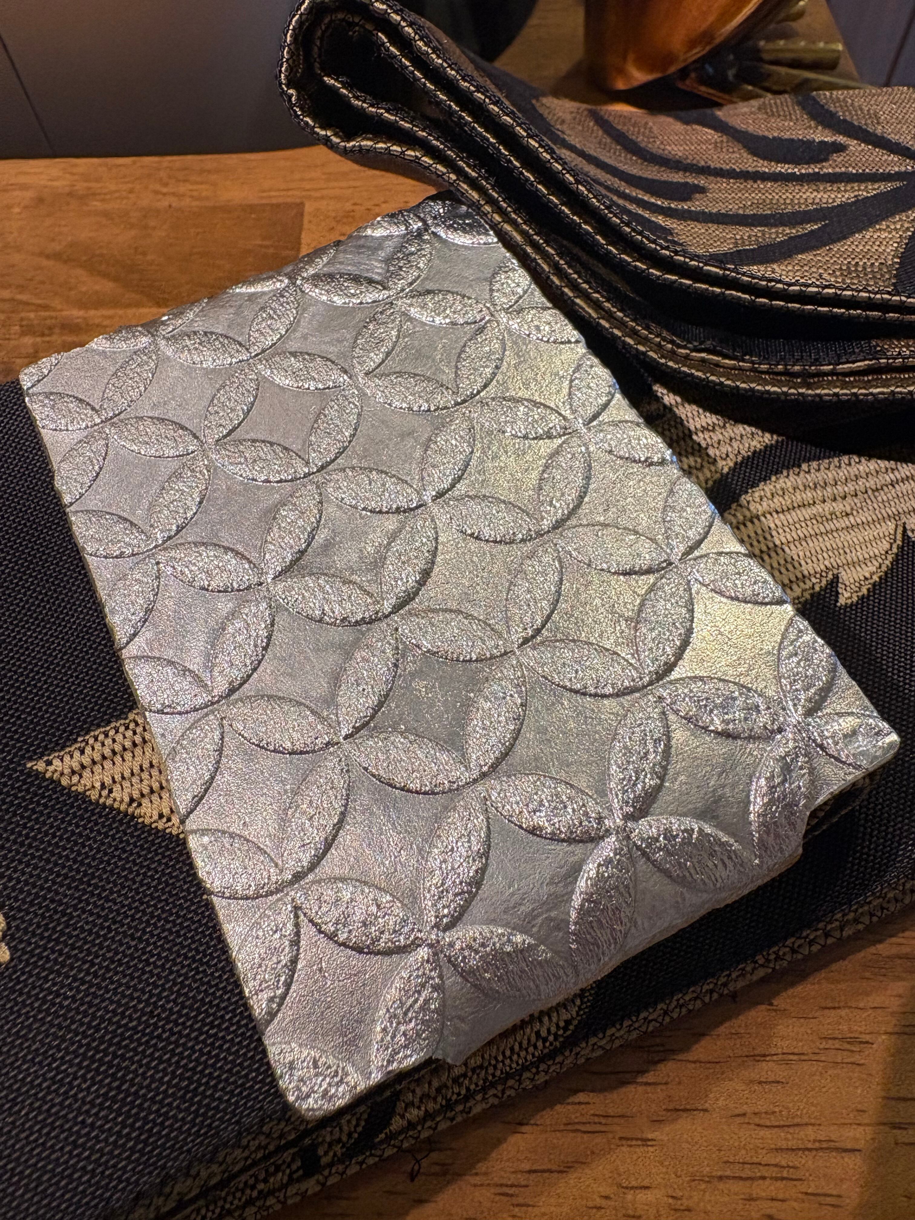 深みのあるプラチナカラーが着物や浴衣に鮮やかなアクセントを加え、独特の存在感を放ちます。素材はmade in Japan or上田市