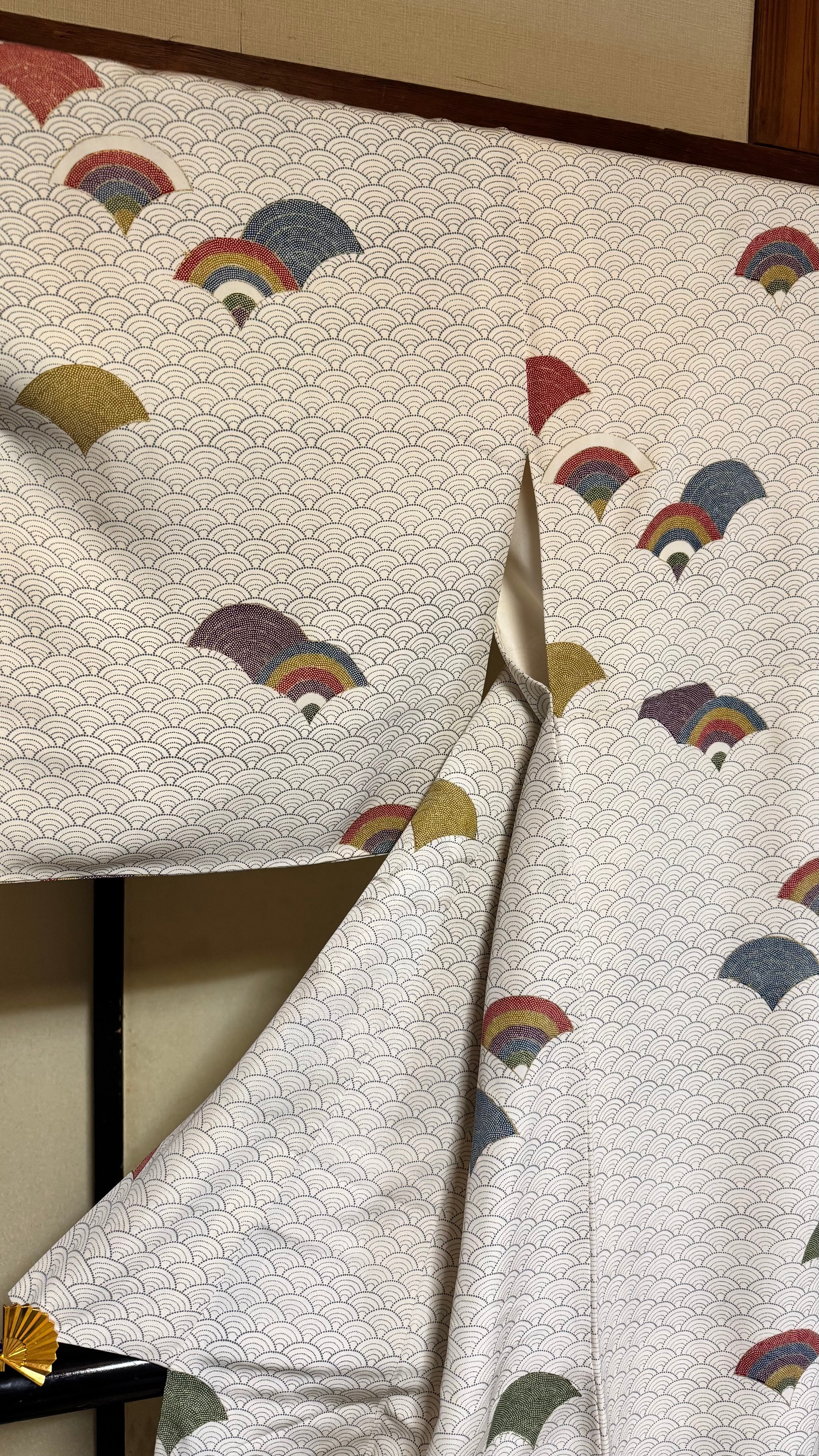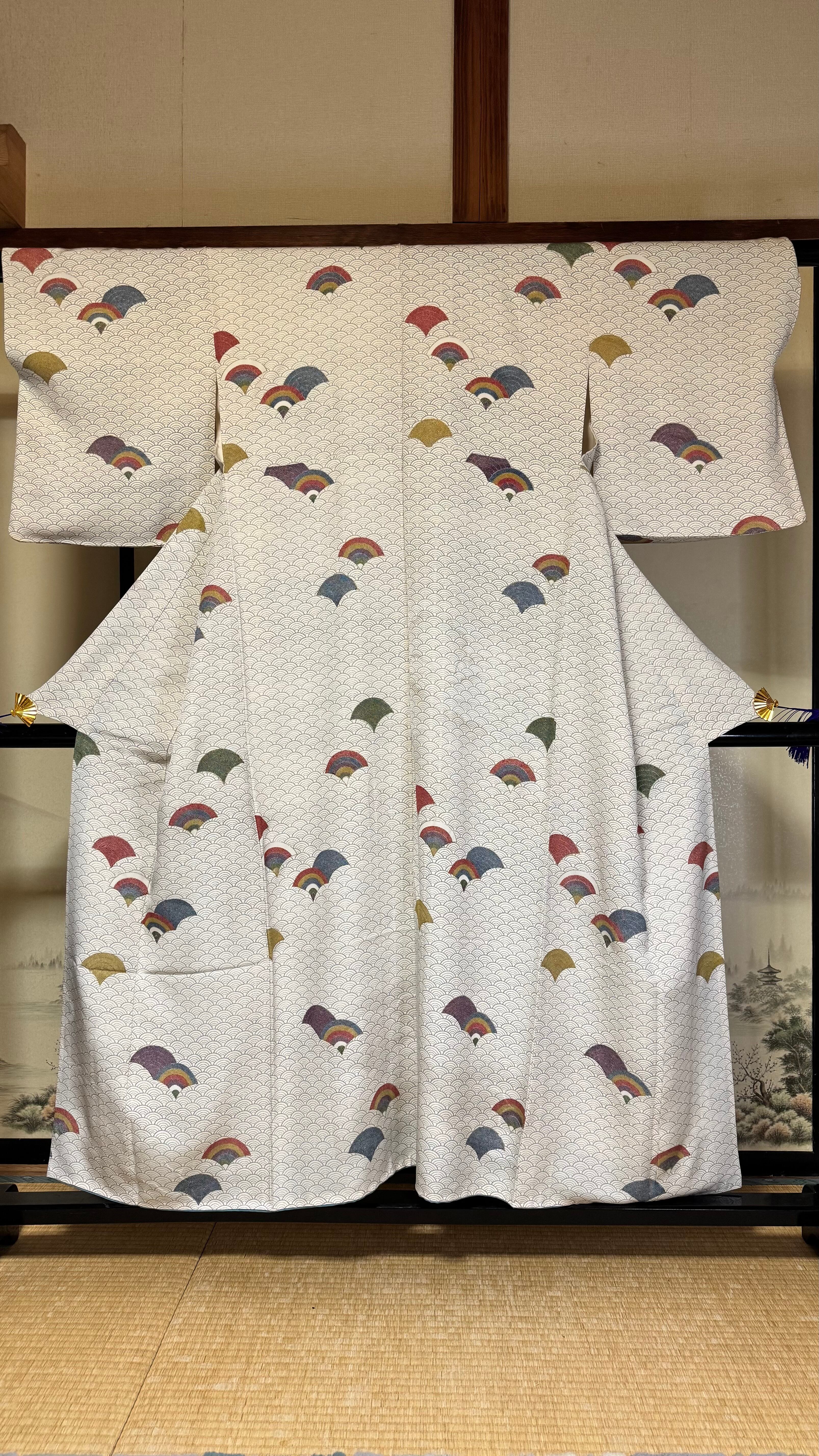 この小紋は、新古品で状態も良好なため、安心してお召しいただけます。柔らかな生地が心地よい着心地を提供し、自由に動くことができるのが魅力。上品な青海波文様は、着る人に優雅さを与え、特別な日やカジュアルなお出かけでも華やかさをプラスします。