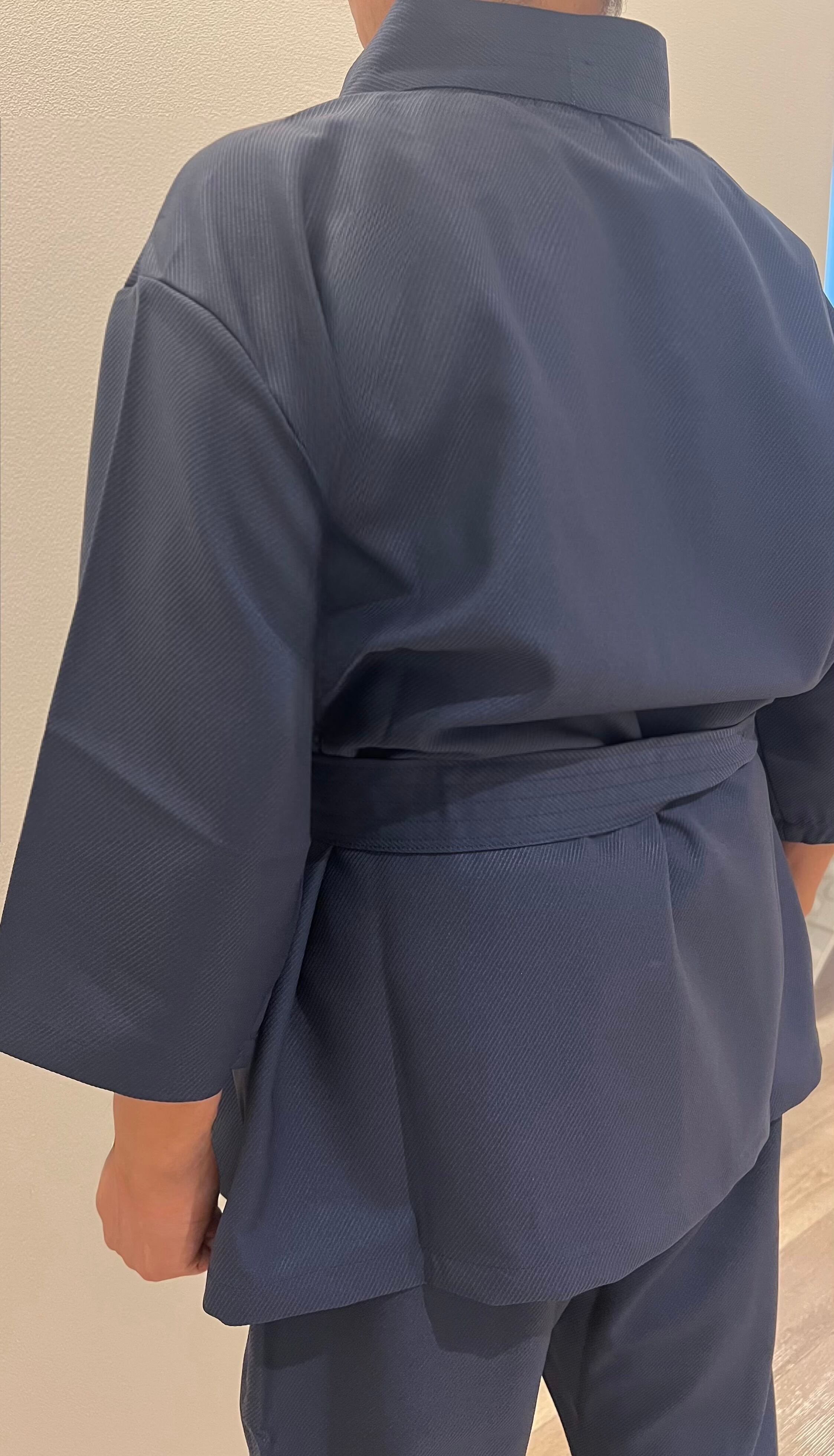 24時間着物を着る。着苦しくない簡単。そして世界初JAPAN beauty着物と日本の国技柔道、空手の道着を融合。オシャレ感とシルエットを大切に更に柄は昔からの人々の念いや考え方がある小紋柄に拘り本格着物調に。素材はまさに空手の聖地琉球のかりゆしの最高綾織ポリエステルで